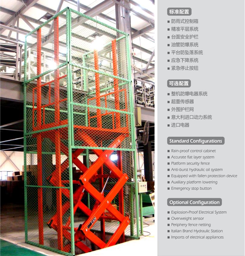 固定式液壓升降貨梯是用于貨物運送的專業液壓升降臺,主要應用于倉庫、車庫、車間等各種工作層間上下貨物輸送,具有廣泛的適用性,承載量大、升降安全平穩,安裝維護簡單方便,是經濟實用的理想貨物輸送設備